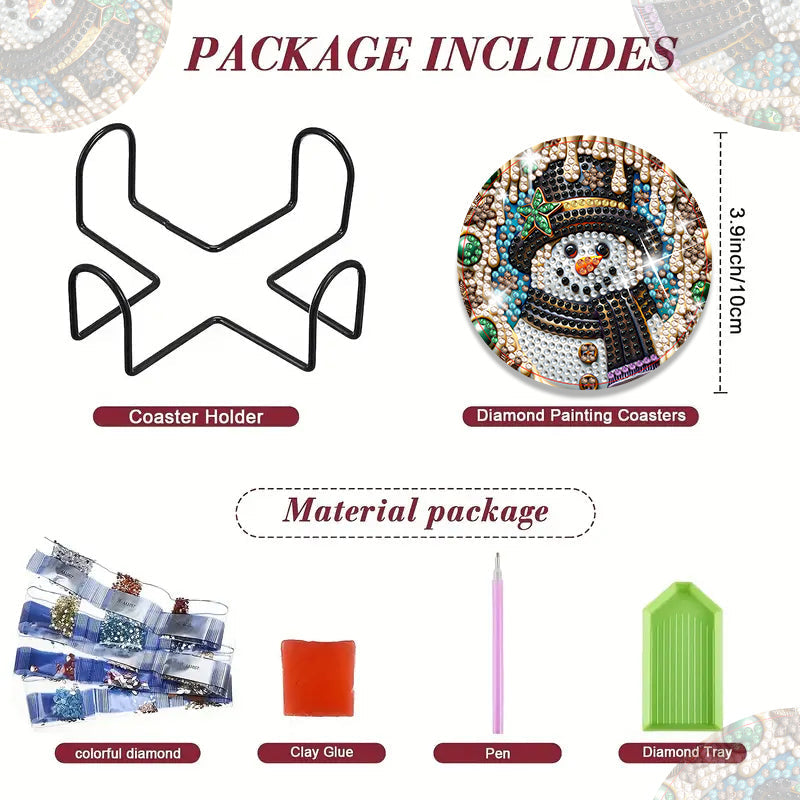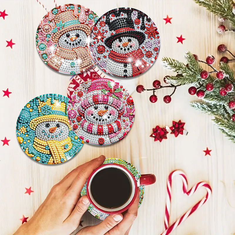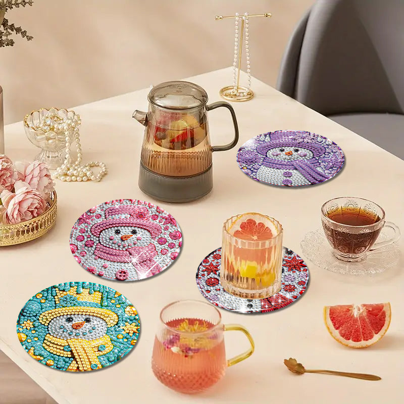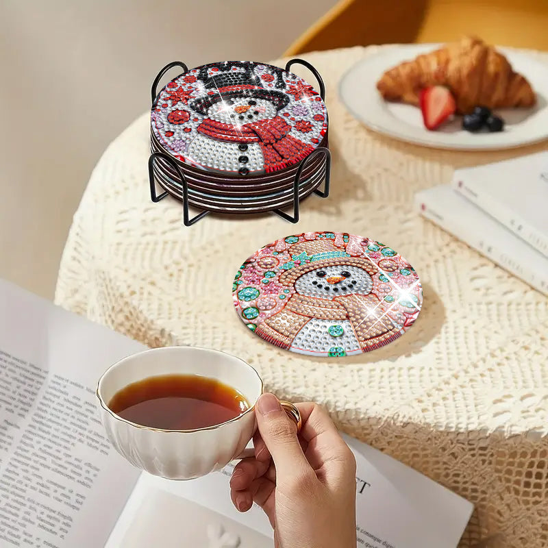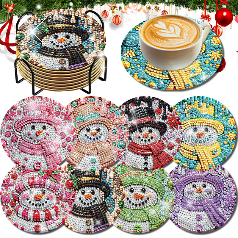 8 stuks set DIY Diamond Painting Coaster | Kerst Sneeuwman
