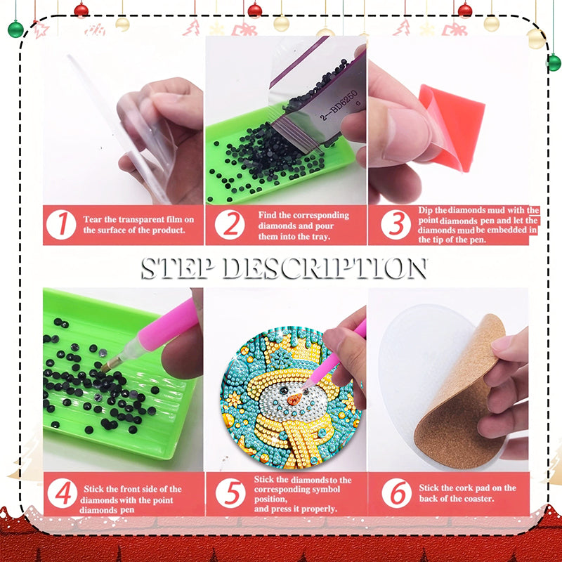 GEMAKKELIJK TE BEDIENEN - Deze kit wordt geleverd met diamantverfgereedschappen waarmee u zes onderzetters kunt maken. Scheur eerst de beschermfolie van de onderzetter en zoek vervolgens de strass-steentjes die u nodig hebt volgens het nummer/de letter op de onderzetter (het overeenkomstige nummer/de letter staat op de zak) om te beginnen met maken. Plak ten slotte de kurken pad op de achterkant van de onderzetter.