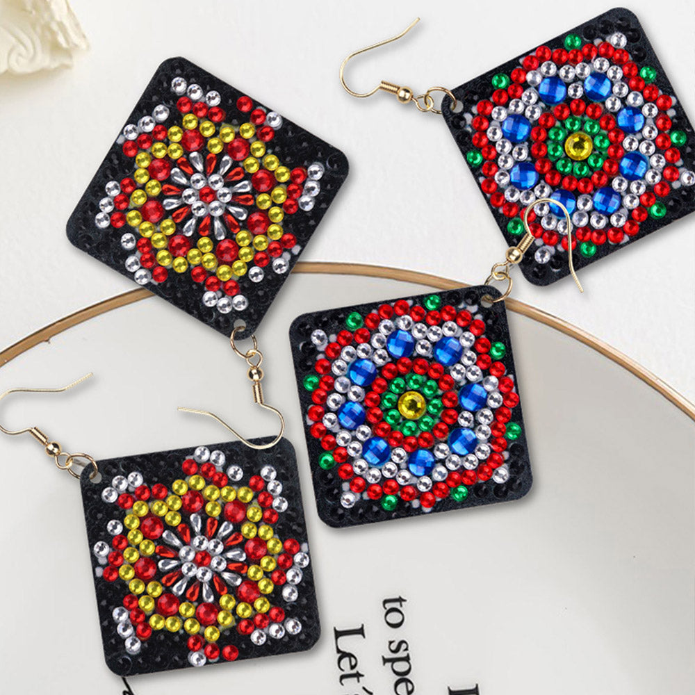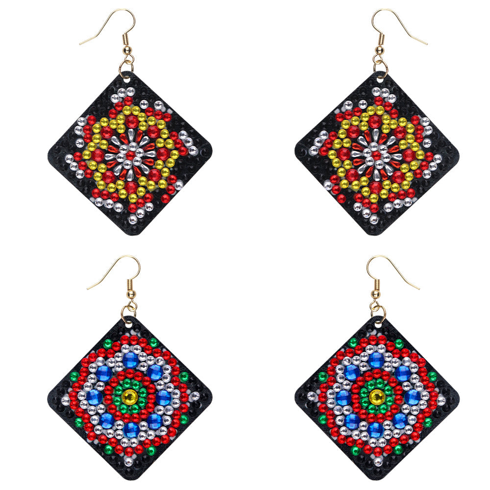 Diamant beschilderde oorbellen | Vierkant | 4 stuks