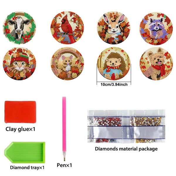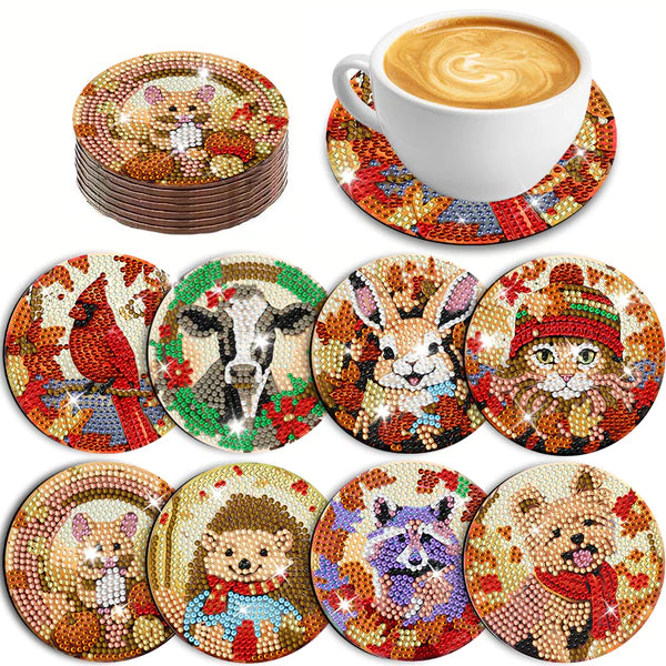 Diamond Painting Onderzetter | Dieren (Set Van 8) | Zonder Beugel