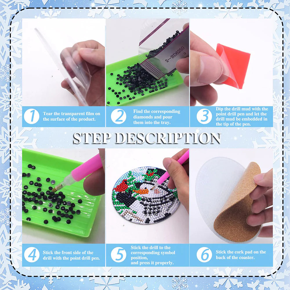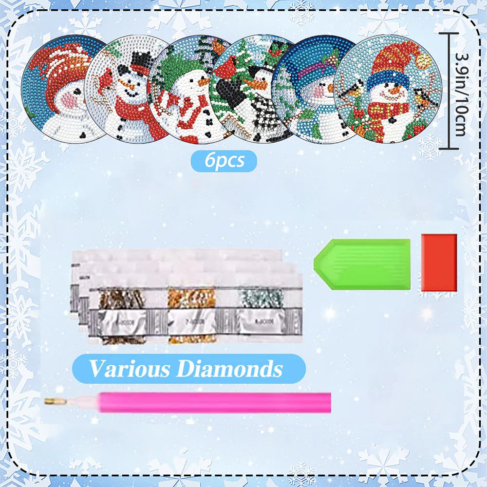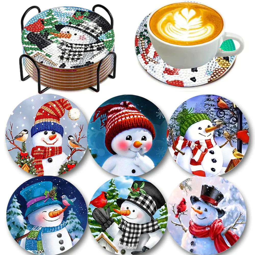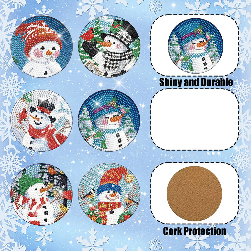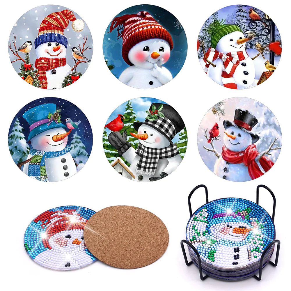 Diamond Painting Onderzetter | Sneeuwpop (Set Van 6) | Zonder Beugel