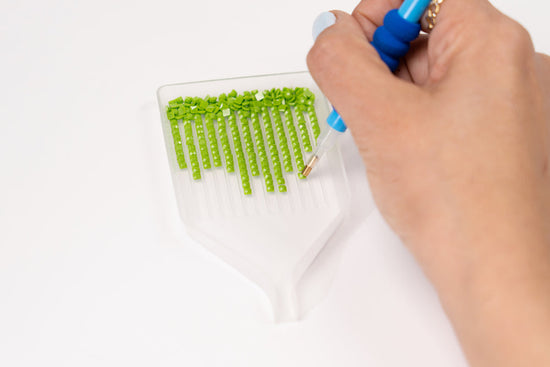 Pak elke diamant op door de applicator tegen de ronde, gefacetteerde kant van de diamant te drukken