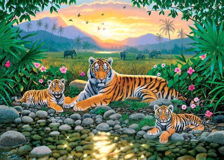 TIJGERS DIE OP HET GRAS LIGGEN
