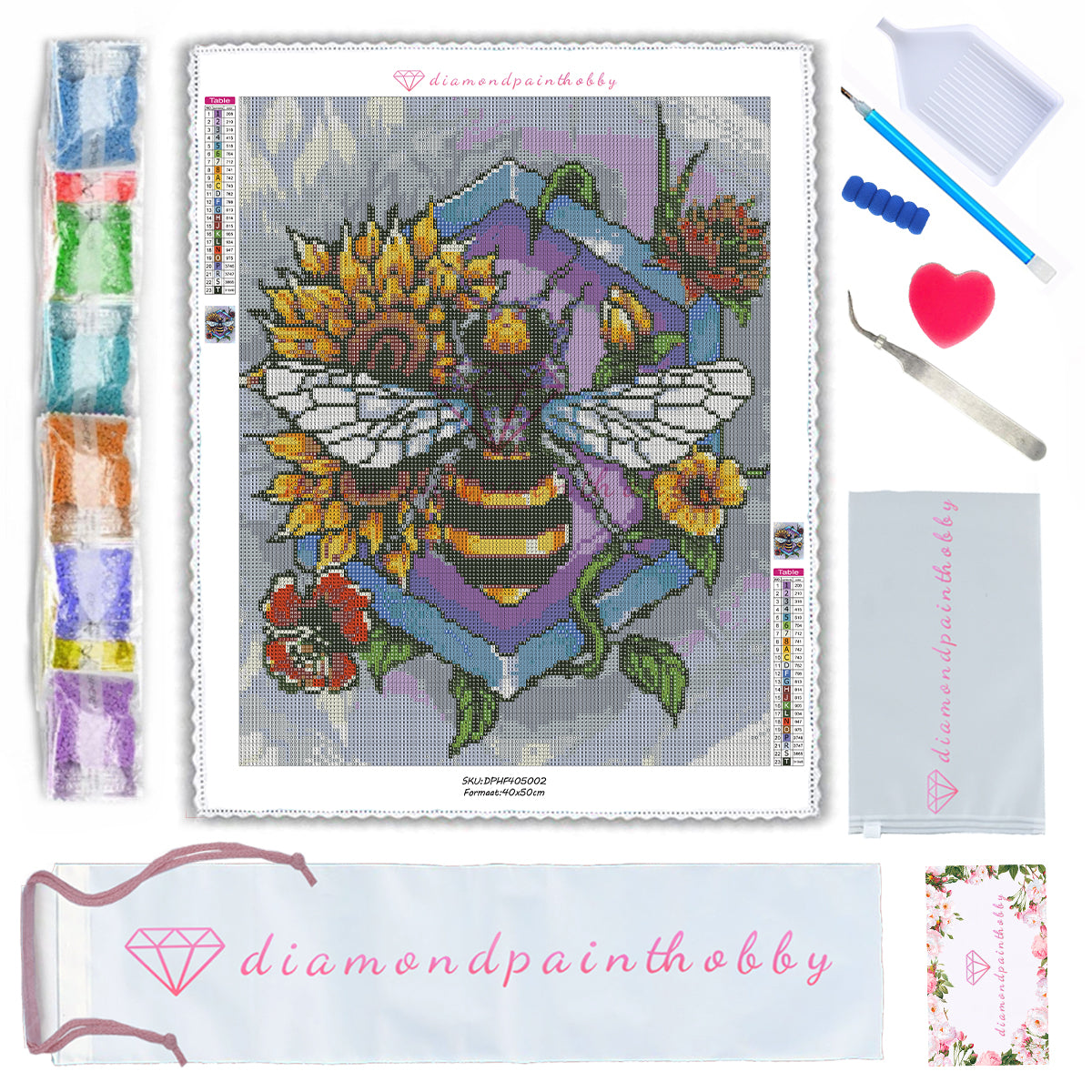 DE PERFECTE SCHILDERERVARINGOnze pakketten bevatten alles wat u nodig hebt om meteen aan de slag te gaan met uw nieuwe kunstwerk. Inclusief een premium, fluweel canvas dat zachte, hoogwaardige kleurdiamanten voelt, een premium pen en wax.