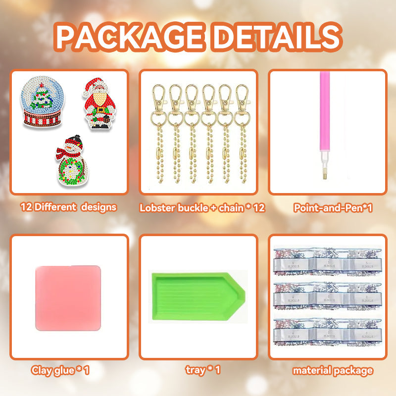 12 stuks DIY Diamond Painting Sleutelhanger | Kerstdier (Enkele zijde)