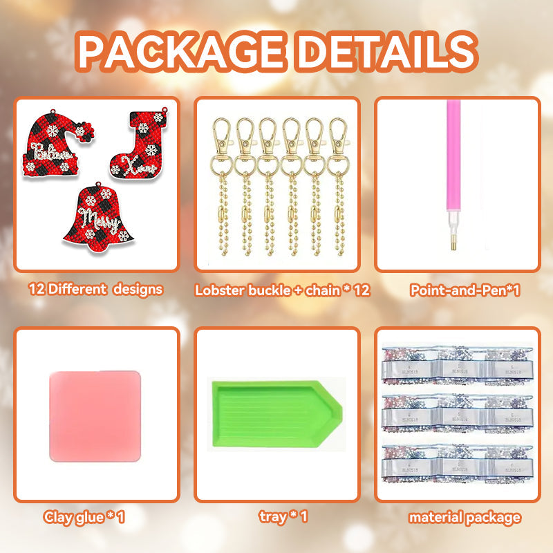 12 stuks DIY Diamond Painting Sleutelhanger | Kerstletter (enkele zijde)