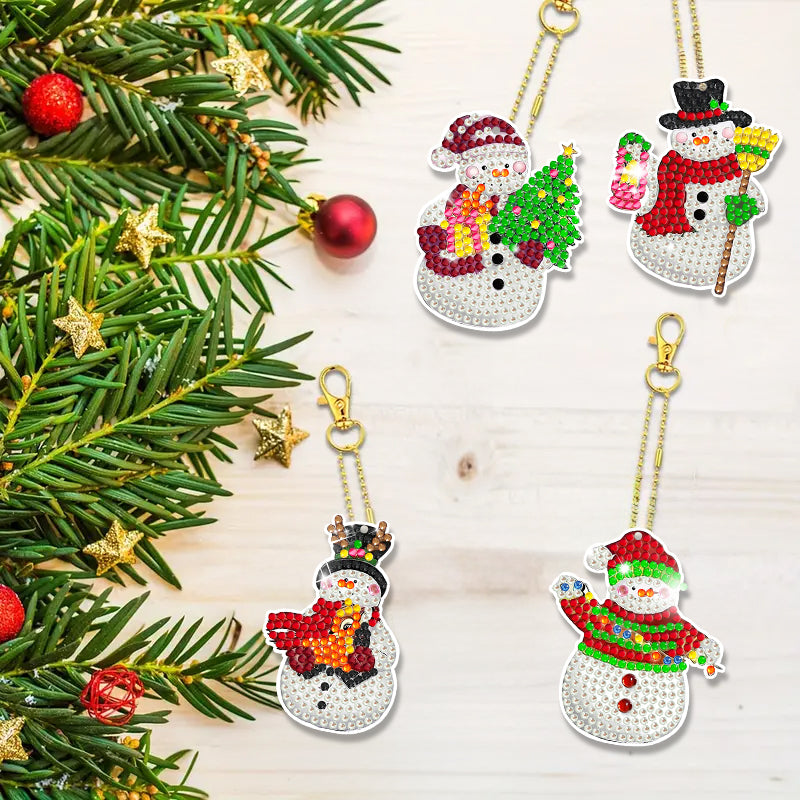 12 stuks DIY Diamond Painting Sleutelhanger | Sneeuwpop (Enkele zijde)
