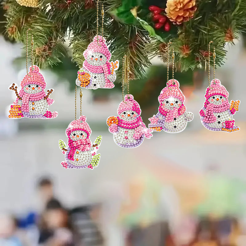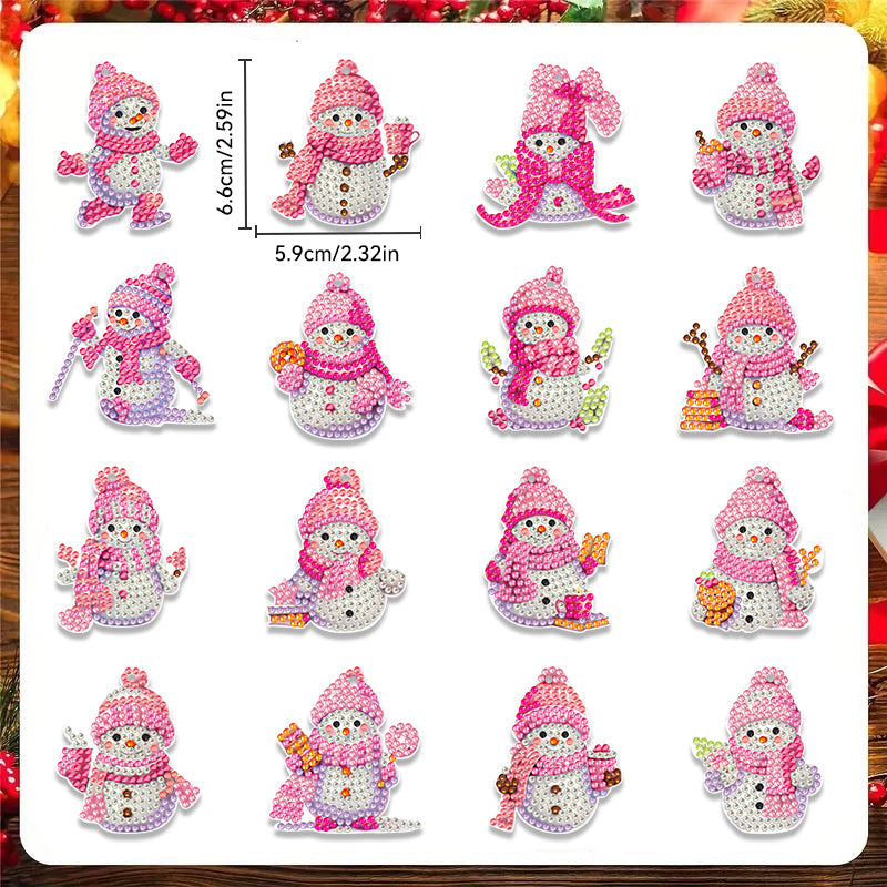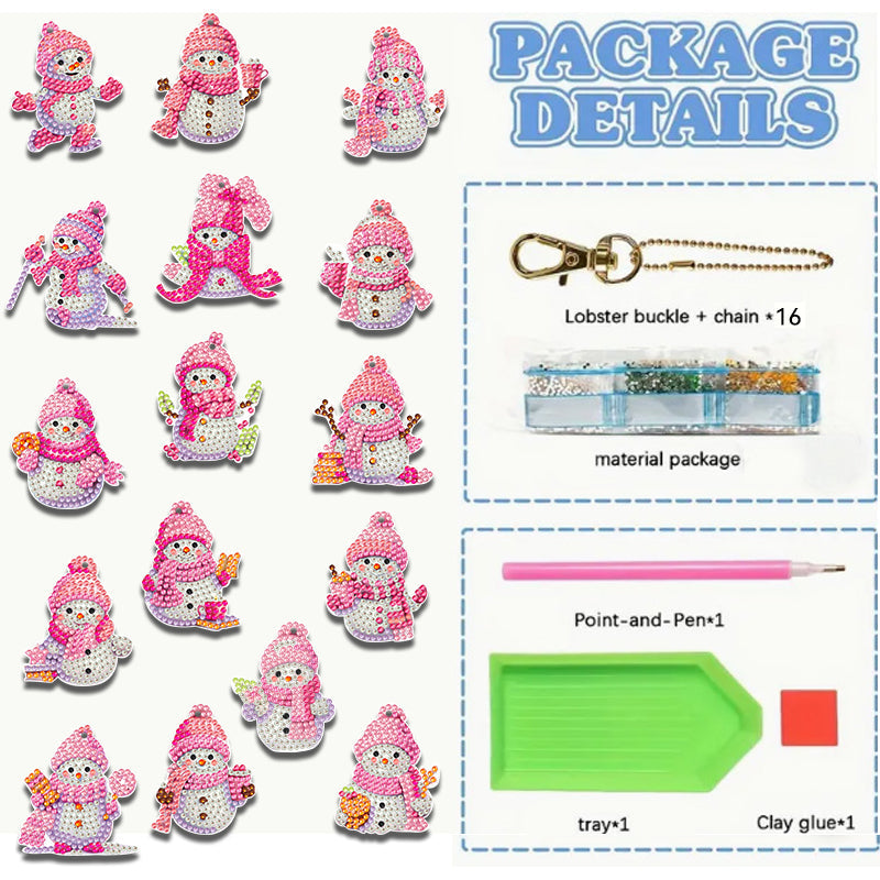 16 stuks DIY Diamond Painting Sleutelhanger | Sneeuwpop (Enkele zijde)