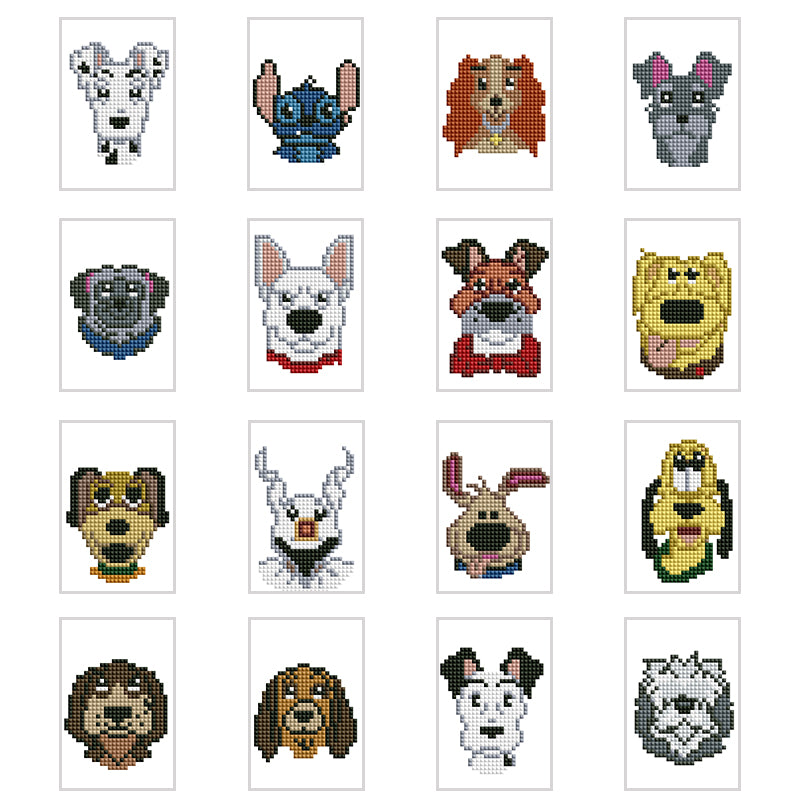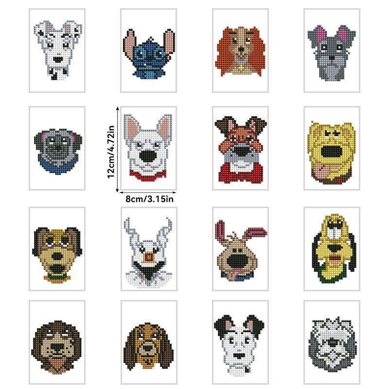 16-delig mini vierkant diamantschilderij - cartoon