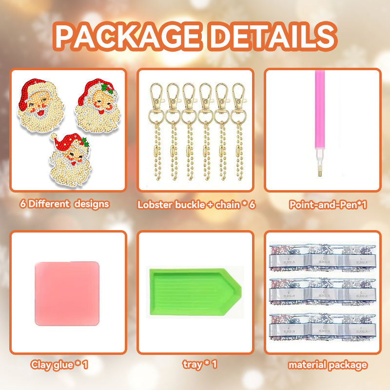 6 stuks DIY Diamond Painting Sleutelhanger | Kerstman (Enkele zijde)
