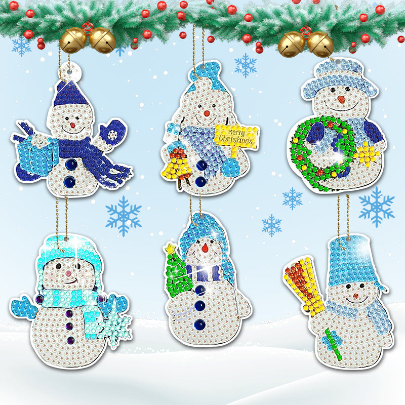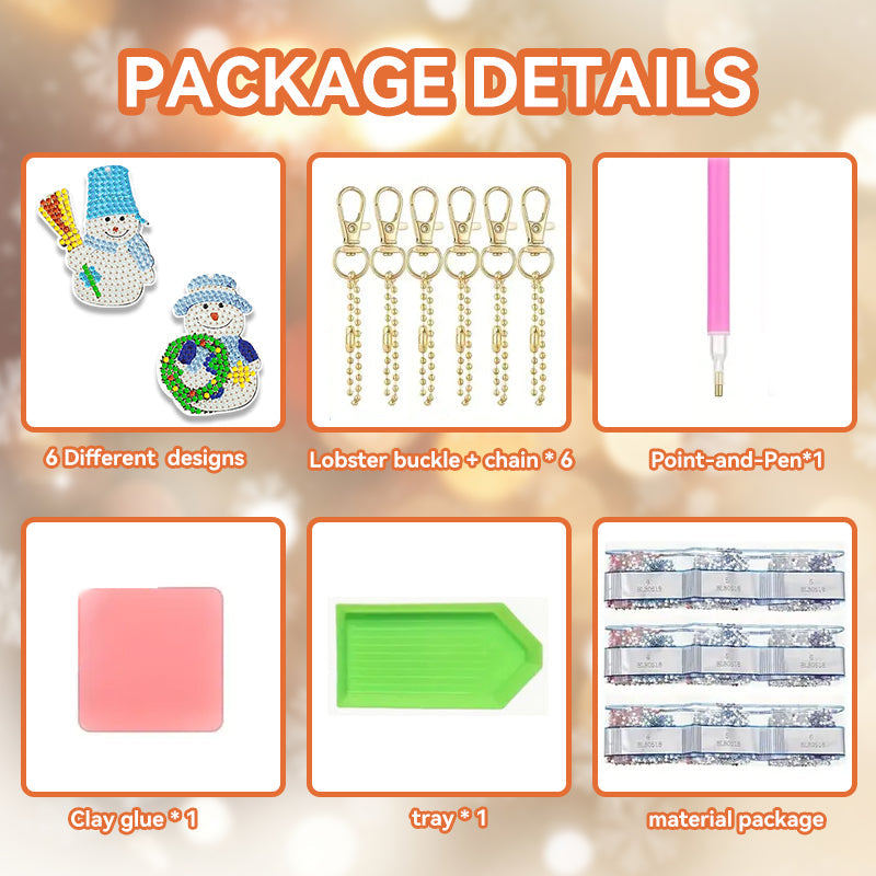 6 stuks DIY Diamond Painting Sleutelhanger | Sneeuwpop (Enkele zijde)
