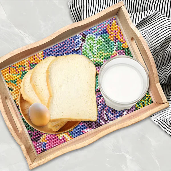 Het in elkaar zetten van de tray is eenvoudig en leuk. Schroef alle onderdelen van het dienblad in elkaar, behalve één zijde. Plaats vervolgens de transparante plaat over je afbeelding en schuif deze in de tray. Bevestig nu het laatste deel van je dienblad en je Diamond Painting Houten Dienblad 20x30cm is klaar voor gebruik.