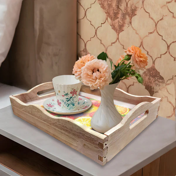 Het is belangrijk om te weten dat het dienblad niet geschikt is voor de vaatwasser en niet volledig in water mag worden ondergedompeld. Je kunt het dienblad eenvoudig schoonvegen met een vochtige doek om het in goede staat te houden en te beschermen.