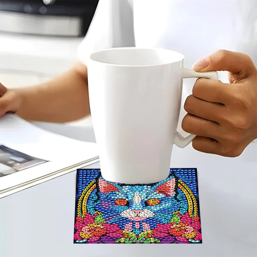 Diamond Painting Onderzetter | Schattig Katje (Set Van 6) | Zonder Beugel