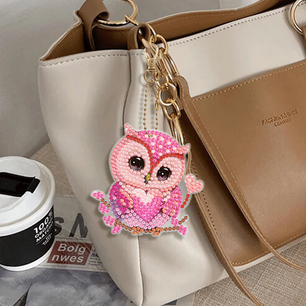 Diamond Painting Sleutelhanger Roze Uil (Set Van 6)