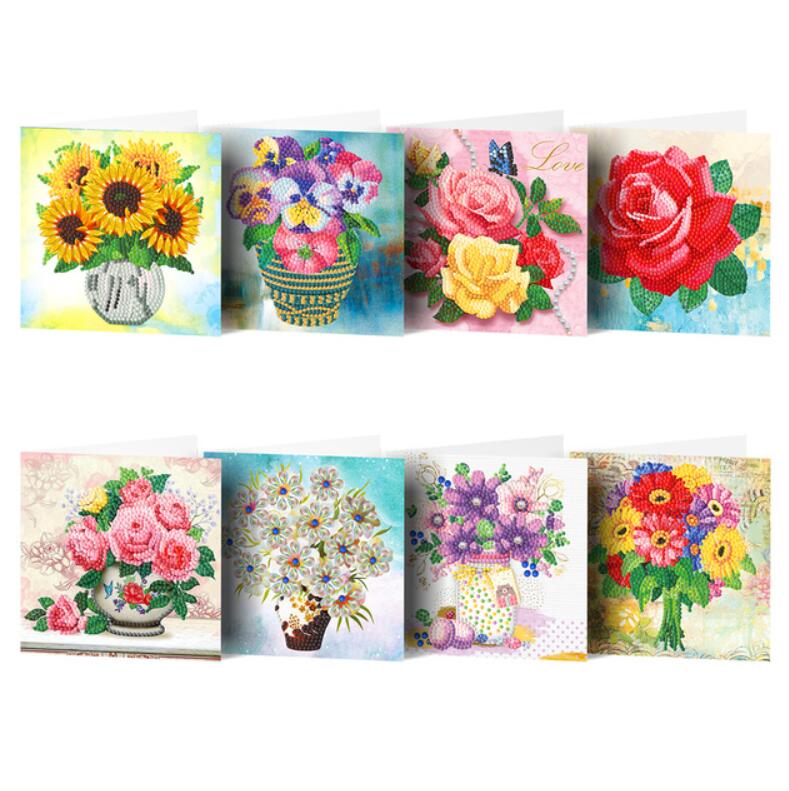 Diamond Painting Wenskaart | Bloemen (Set Van 8)