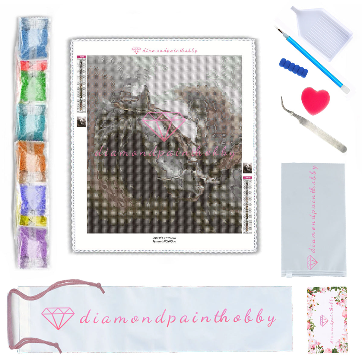 Onze pakketten bevatten alles wat u nodig hebt om meteen aan de slag te gaan met uw nieuwe kunstwerk. Inclusief een premium, fluweel canvas dat zachte, hoogwaardige kleurdiamanten voelt, een premium pen en wax.