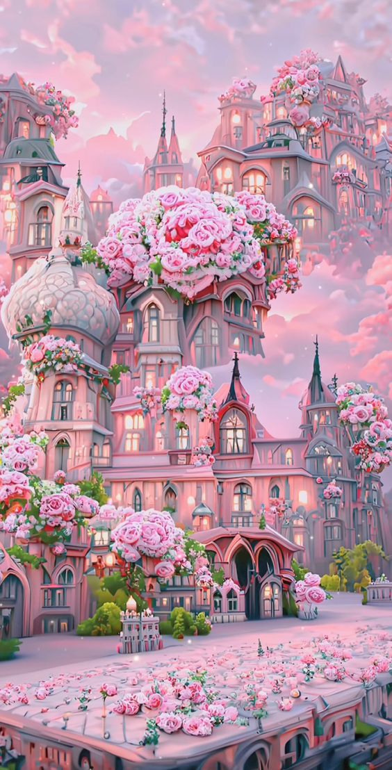 ROZE BLOEMEN KASTEEL